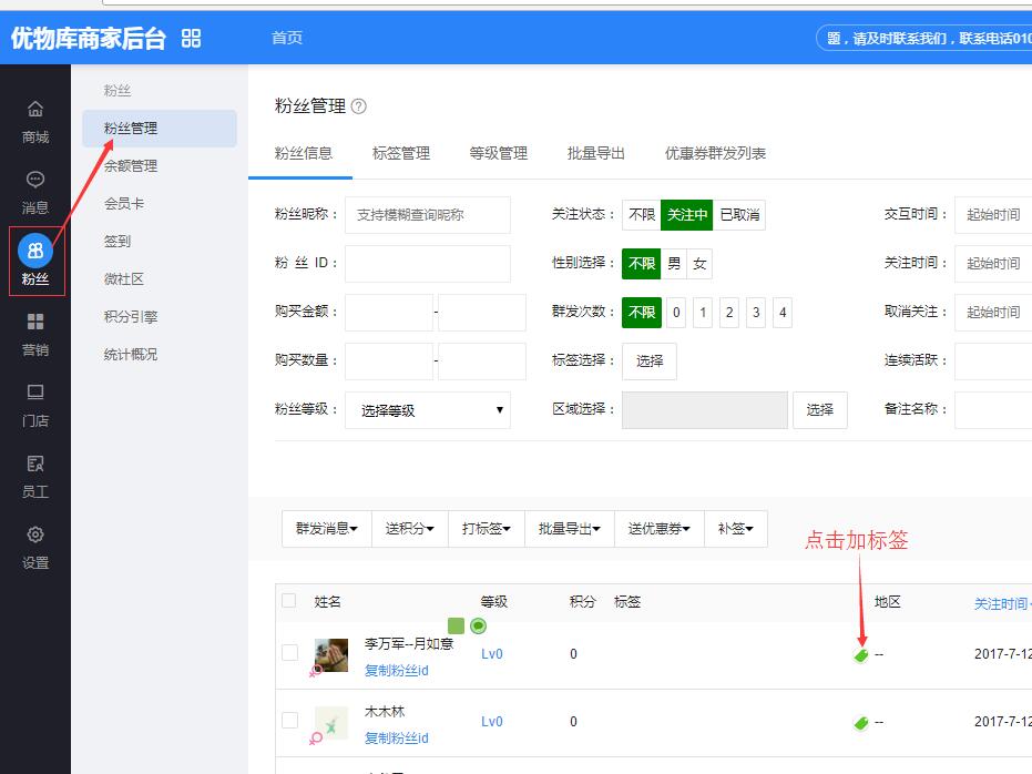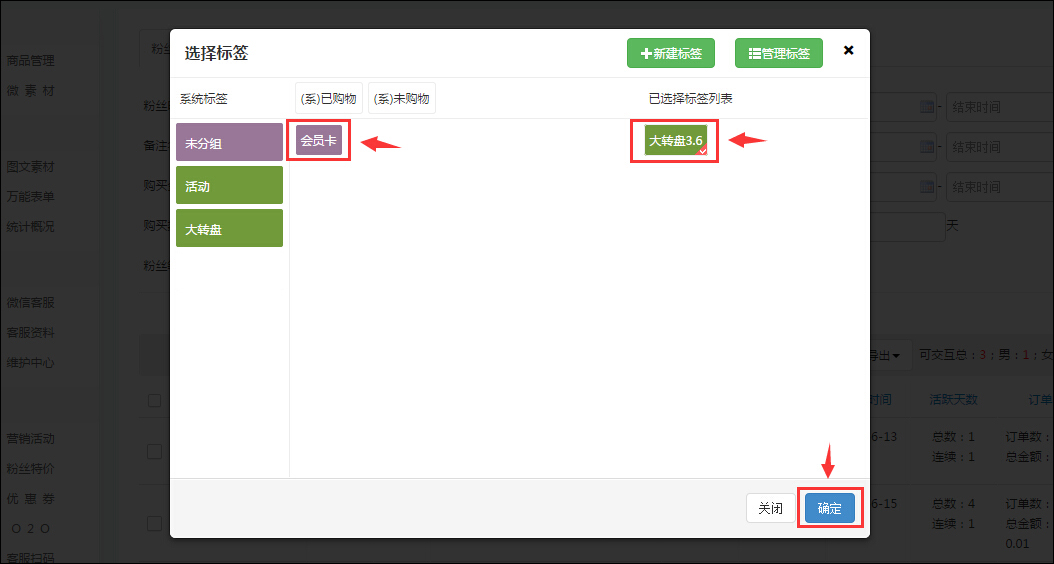 标签的作用在于按照不同的标签,可以给客户进行分组,管理起来更有针对性和目的性。比如,把消费能力比较高的客户打上高消费的标签,下次就可以针对这些客户推送特别的消息。