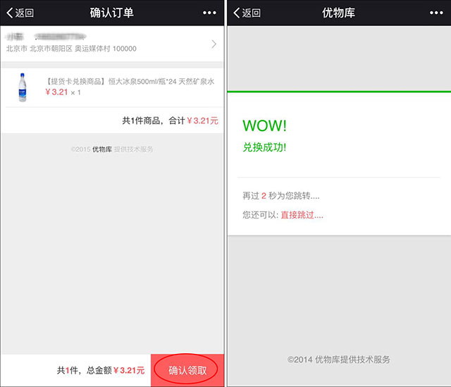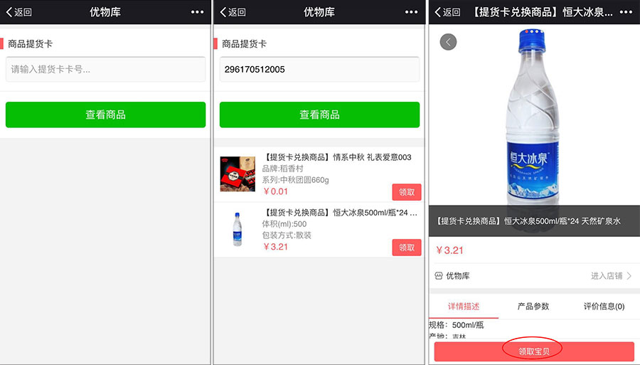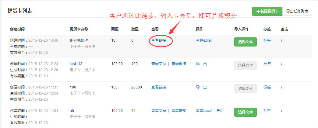 c. 创建提交成功后,将卡号发放给客户,然后客户通过指定兑换链接即可兑换商品
