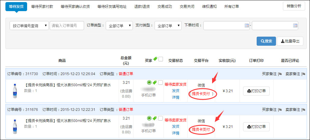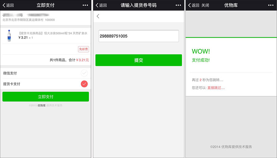 b. 通过正常购买商品,在支付的时候选择提货卡支付