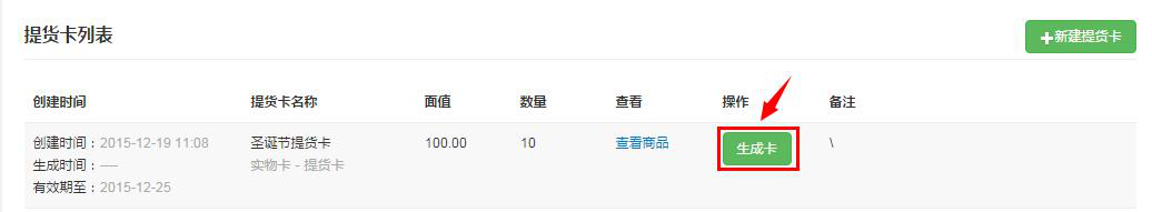 b. 保存成功后,需要点击“生成卡”按钮,等待10分钟左右的时间即可导出卡号,然后下发给客户即可