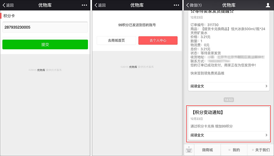 4.客户通过商家发的指定的积分兑换链接,输入卡号即可换取积分