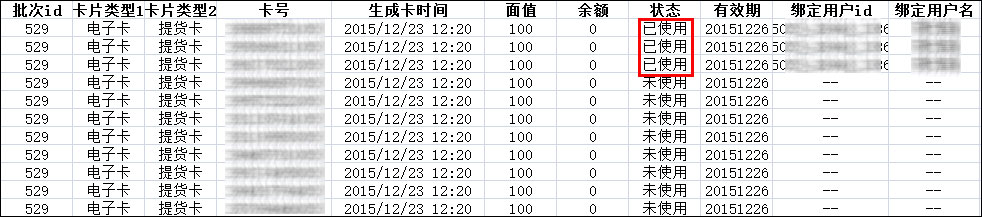 可以通过导出功能卡表格查看哪些粉丝已使用,哪些卡号还没被使用