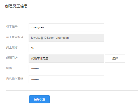 ”可创建新员工账号;
