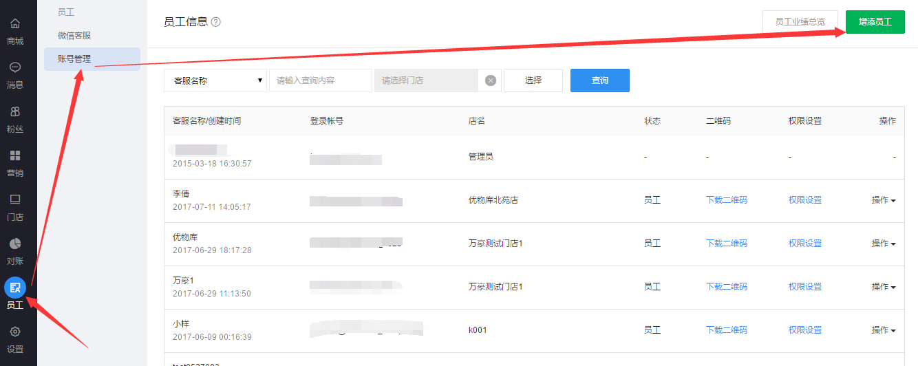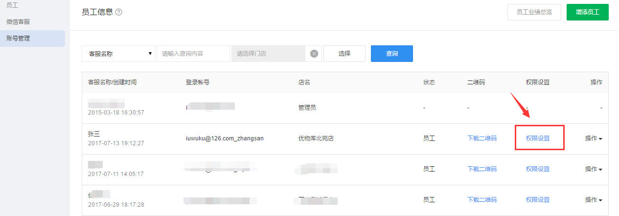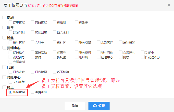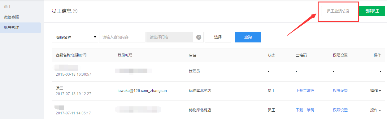 ”项,这样该员工用子账号登陆后只可以查看自己的业绩(拉粉数和相应粉丝成交的成交额)