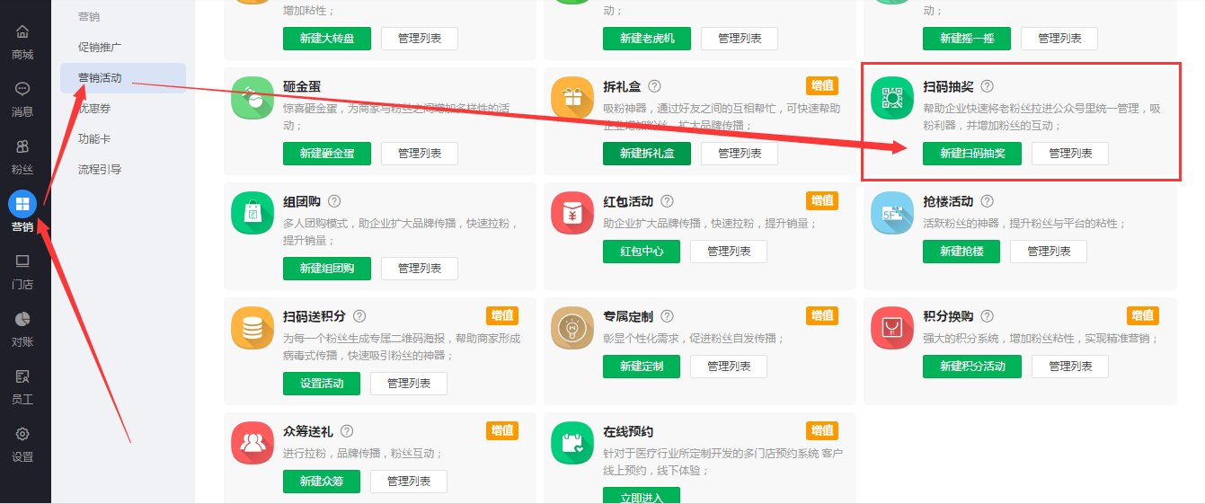 1.进入优物库商家后台--营销活动中,点击新建扫码抽奖
