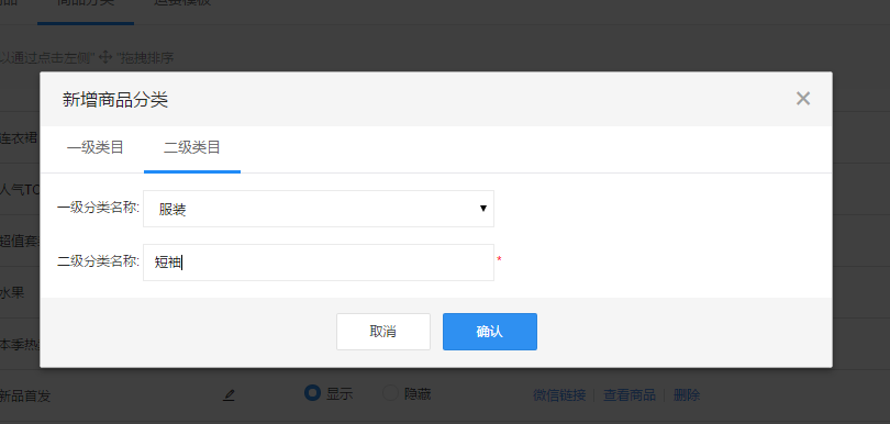 商品分类是方便商家整理分类商品,同时也可以让粉丝在前端页面清晰直观的选购商品的工具。