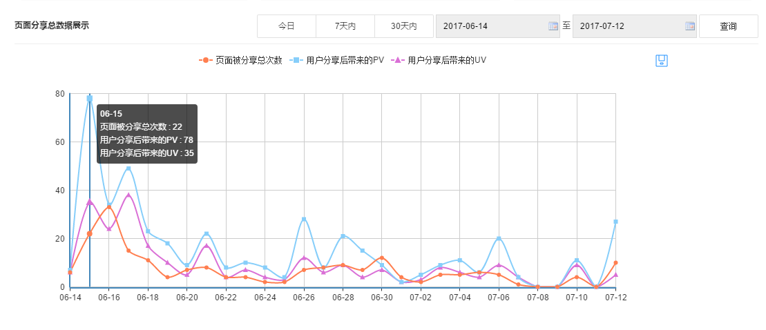 查看页面分享数据,总结什么样的文章或者活动容易使粉丝分享,以达到传播目的。