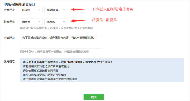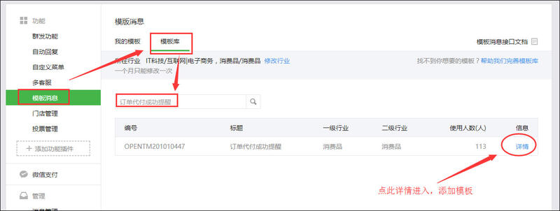 5.成功申请下模板消息后,点击“模板消息”进入“模板库”