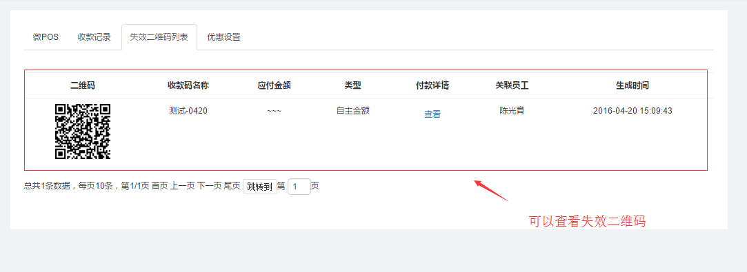 3.查看已创建的收款码,可以查看付款详情、复制付款链接给微杂志使用、下载二维码、使失效等功能;