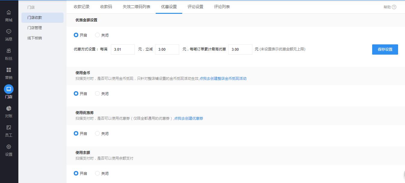 1.设置优惠活动时,记得开启活动哟~